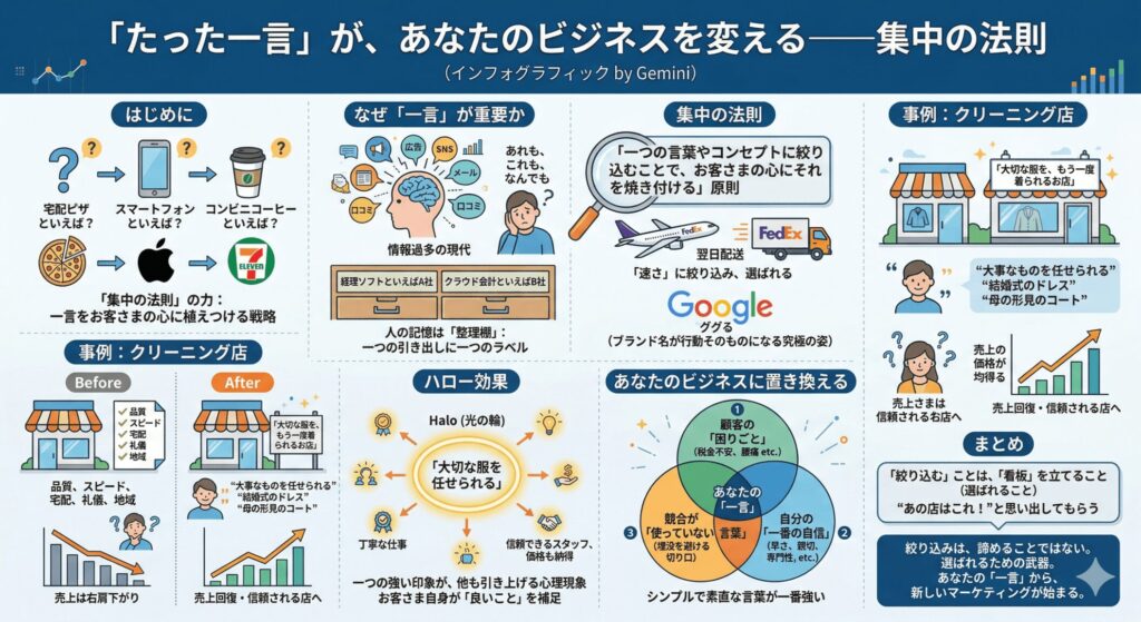 今回お伝えするのは、マーケティングにおけるシンプルでありながら、非常に強力な原則—「たった一言を、お客さまの心に植えつける」という戦略です。