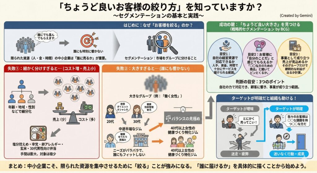 限られた経営資源(人、お金、時間)しか持たない中小企業や個人事業にとって、「誰に売るか」を明確にすることは、事業の成否を分ける重要な決断です。