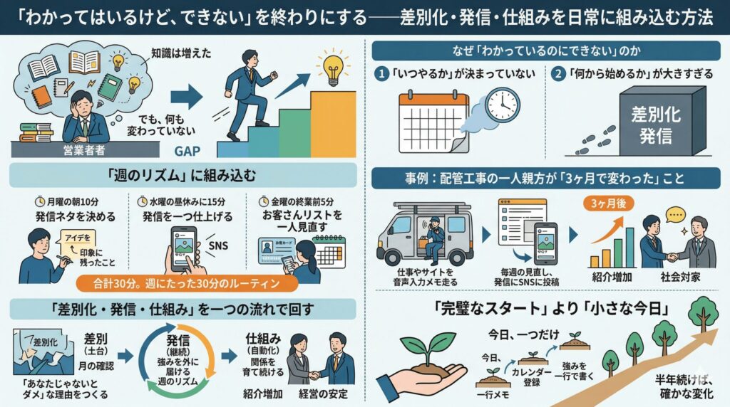 「大事なのに続かない」を変える—差別化・発信・仕組みを日常に落とし込む方法