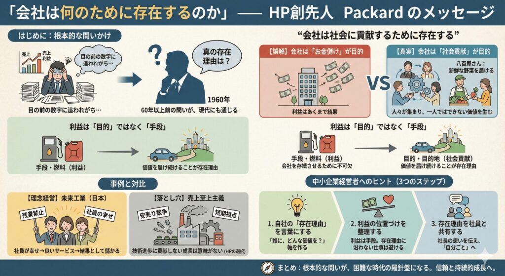 むしろ、経営者の顔が見える中小企業だからこそ、「何のために存在しているのか」という問いに向き合いやすいとも言えるでしょう。