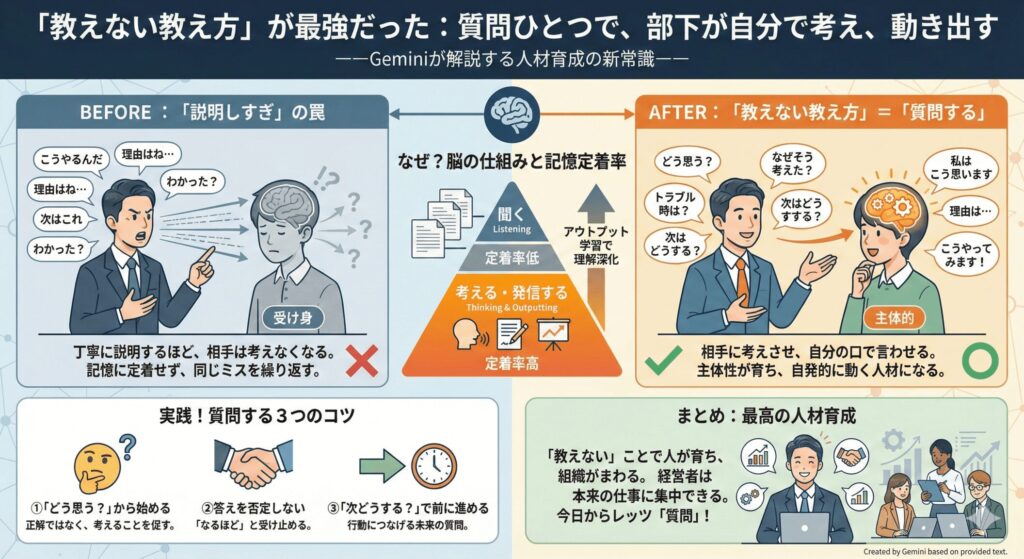 「教えないほうが、人は育つ」——これは一見、矛盾しているように聞こえます。