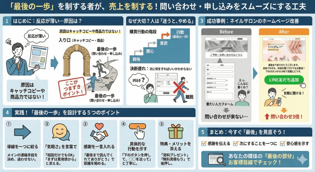 どんなに中身が良くても、最後の一歩で迷わせてしまったら、せっかくの努力が報われません。