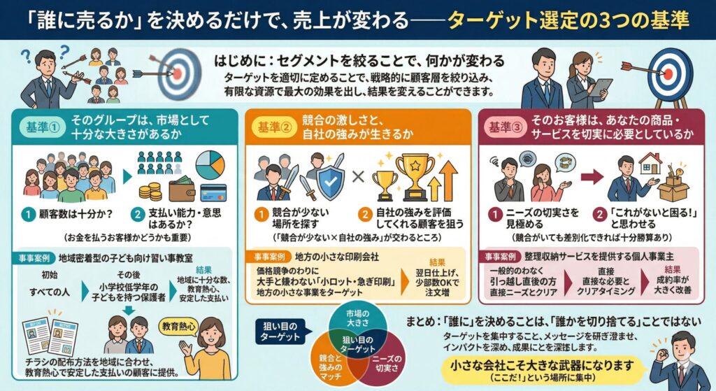 「誰に売るか」を決めるだけで、売上が変わる—ターゲット選定の3つの基準