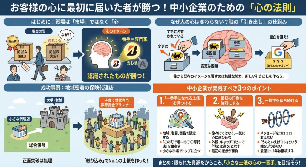 今日は、マーケティングの世界で古くから知られる重要な法則「心の法則」について、中小企業の経営に活かせる形でお話しします。