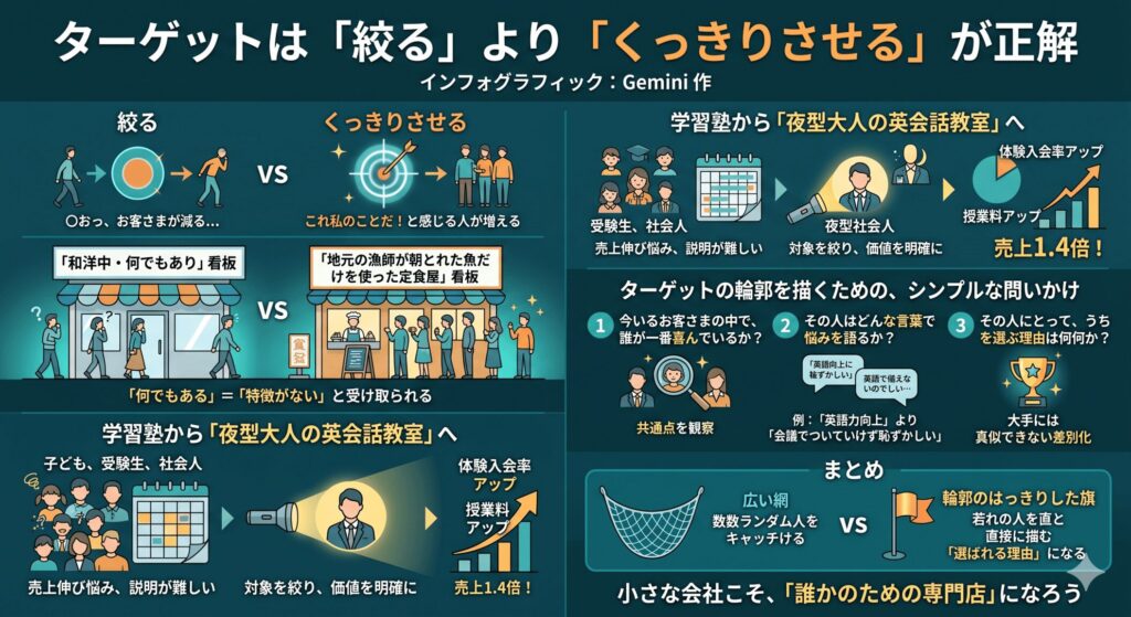 よくある誤解は、「ターゲットを絞る=お客さまを減らす」というものです。
